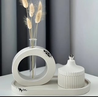 Set tava ovala+vaza ovala cu eprubeta+cutie bijuterii, este ideal pentru a fi oferit cadou pentru ziua de nastere sau un decor ideal in casa ta.